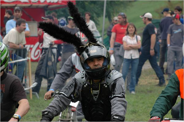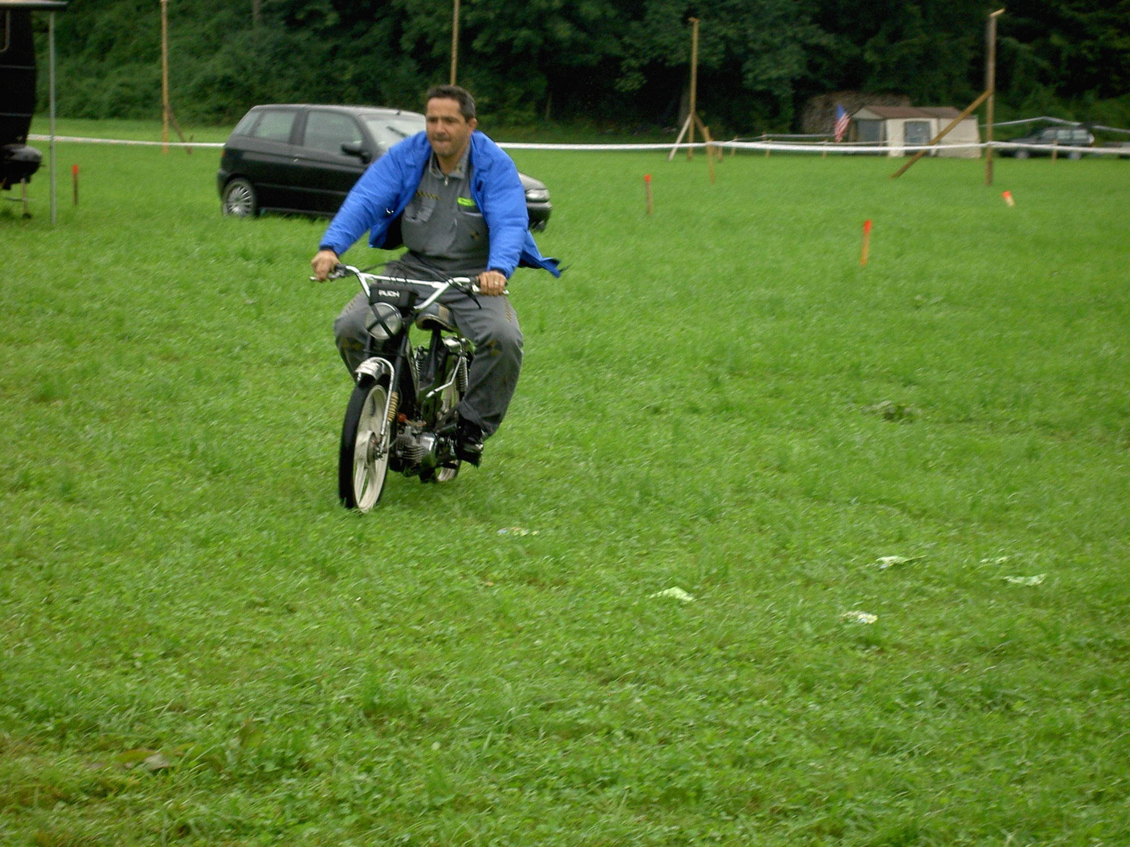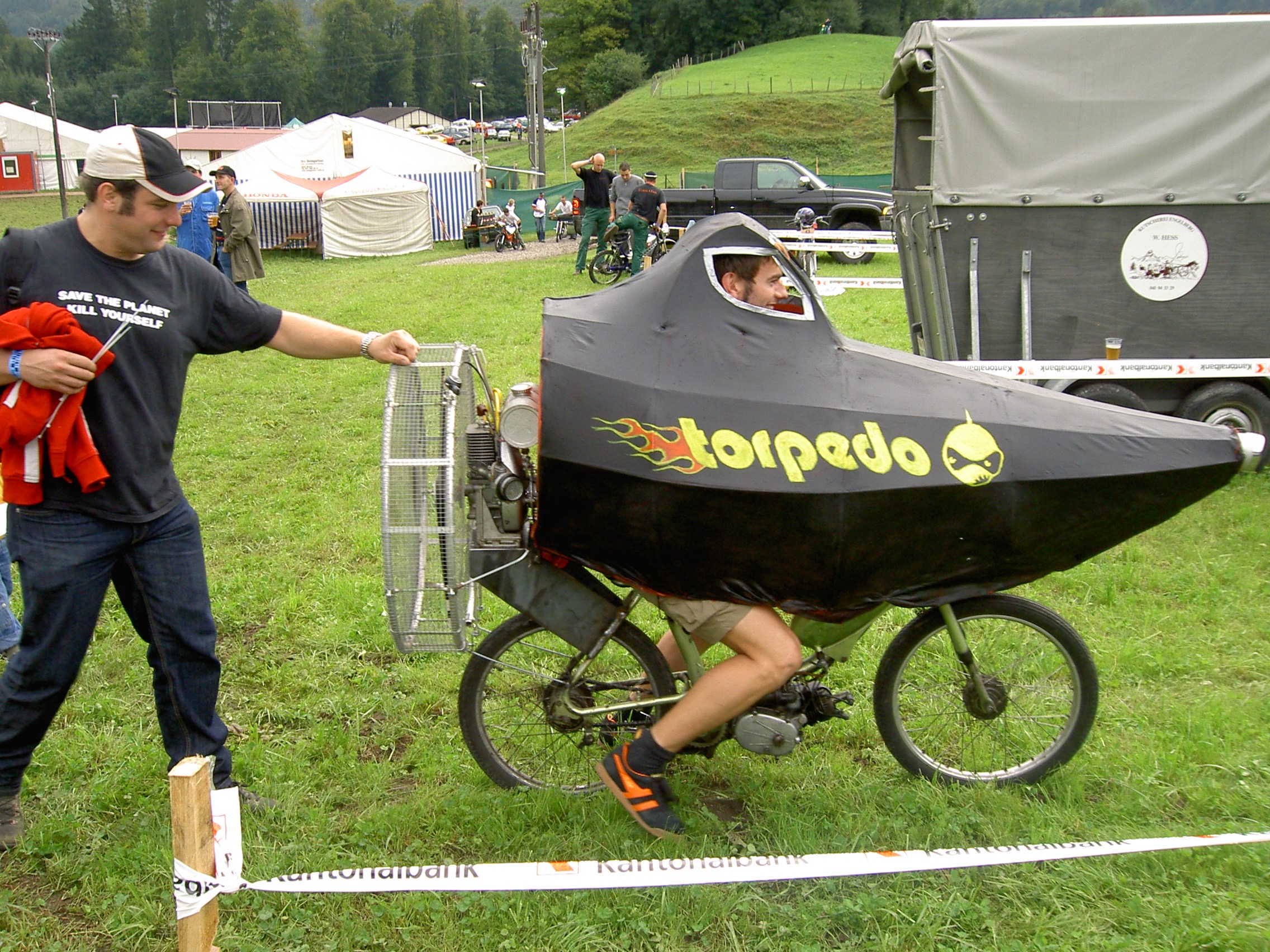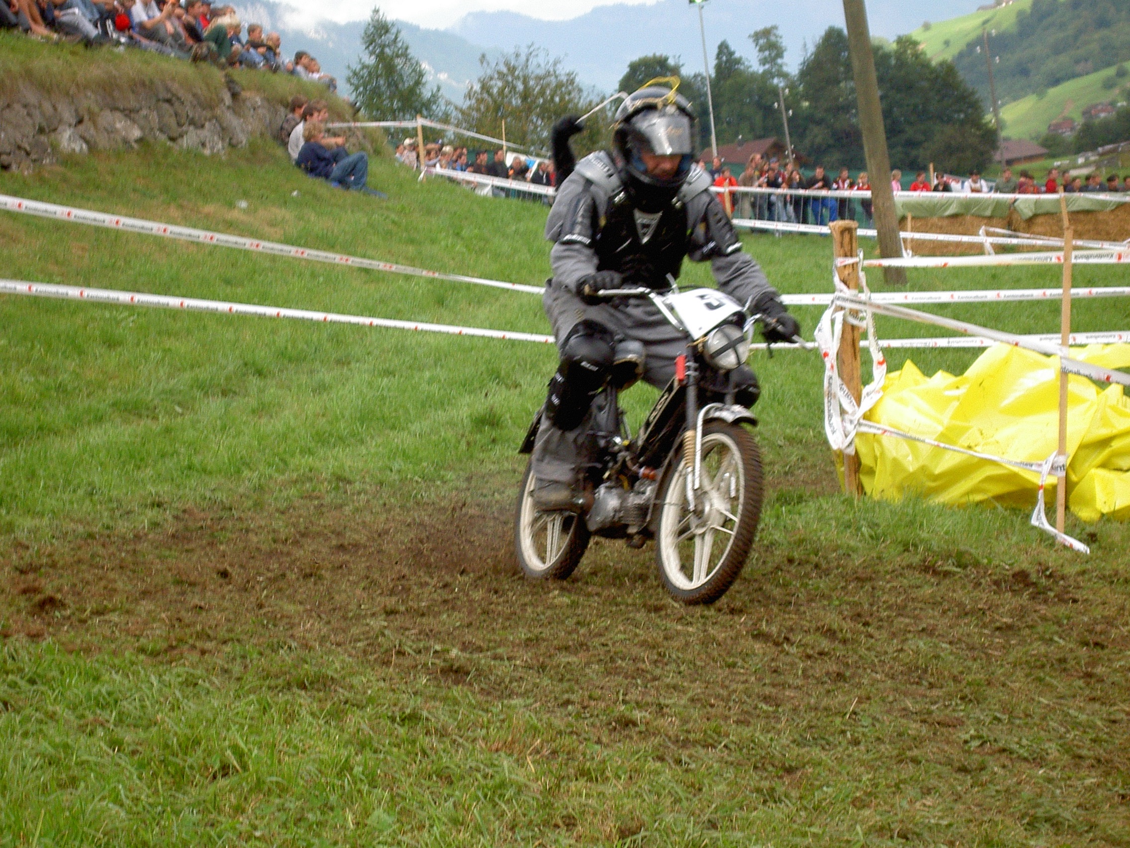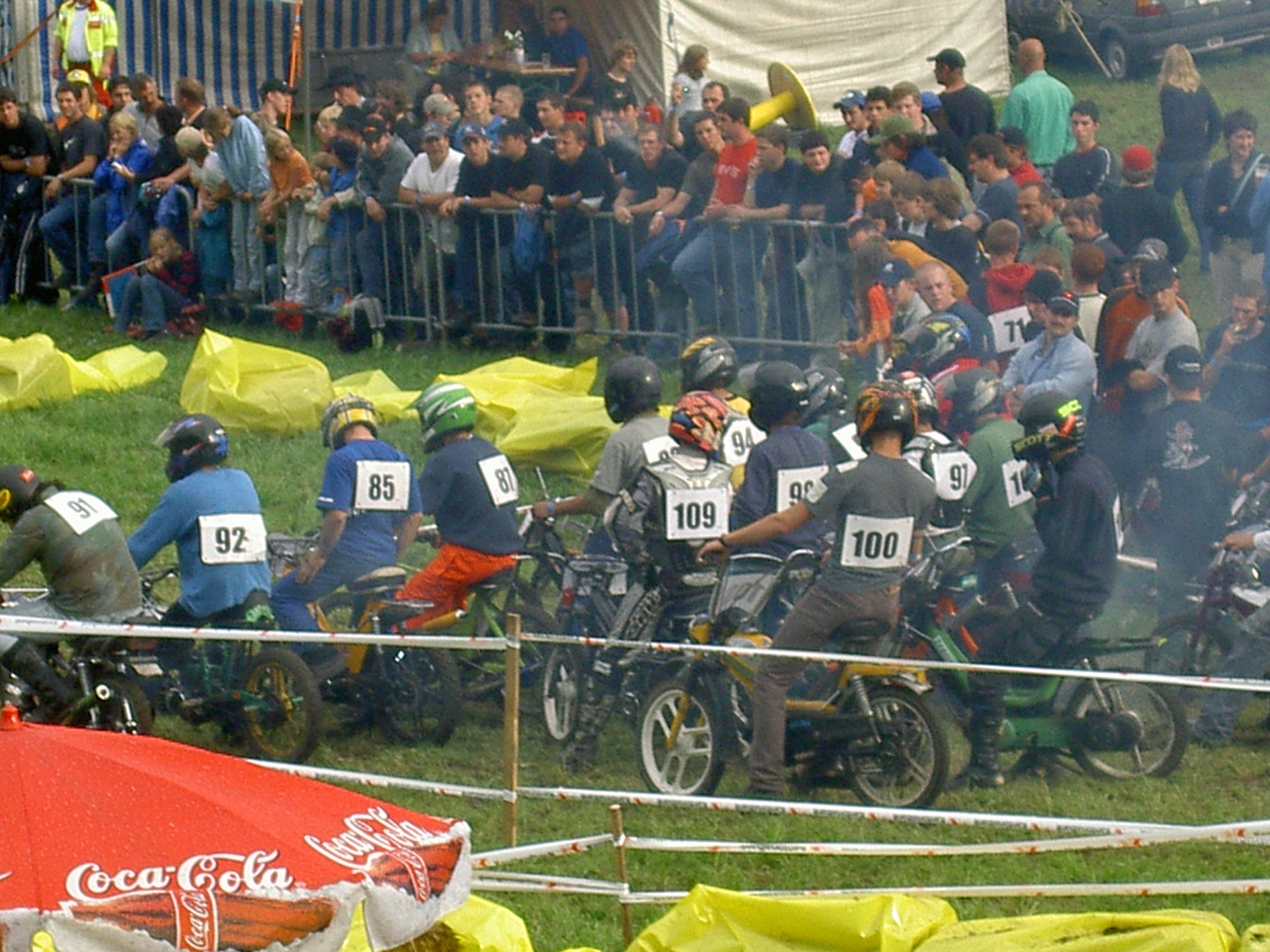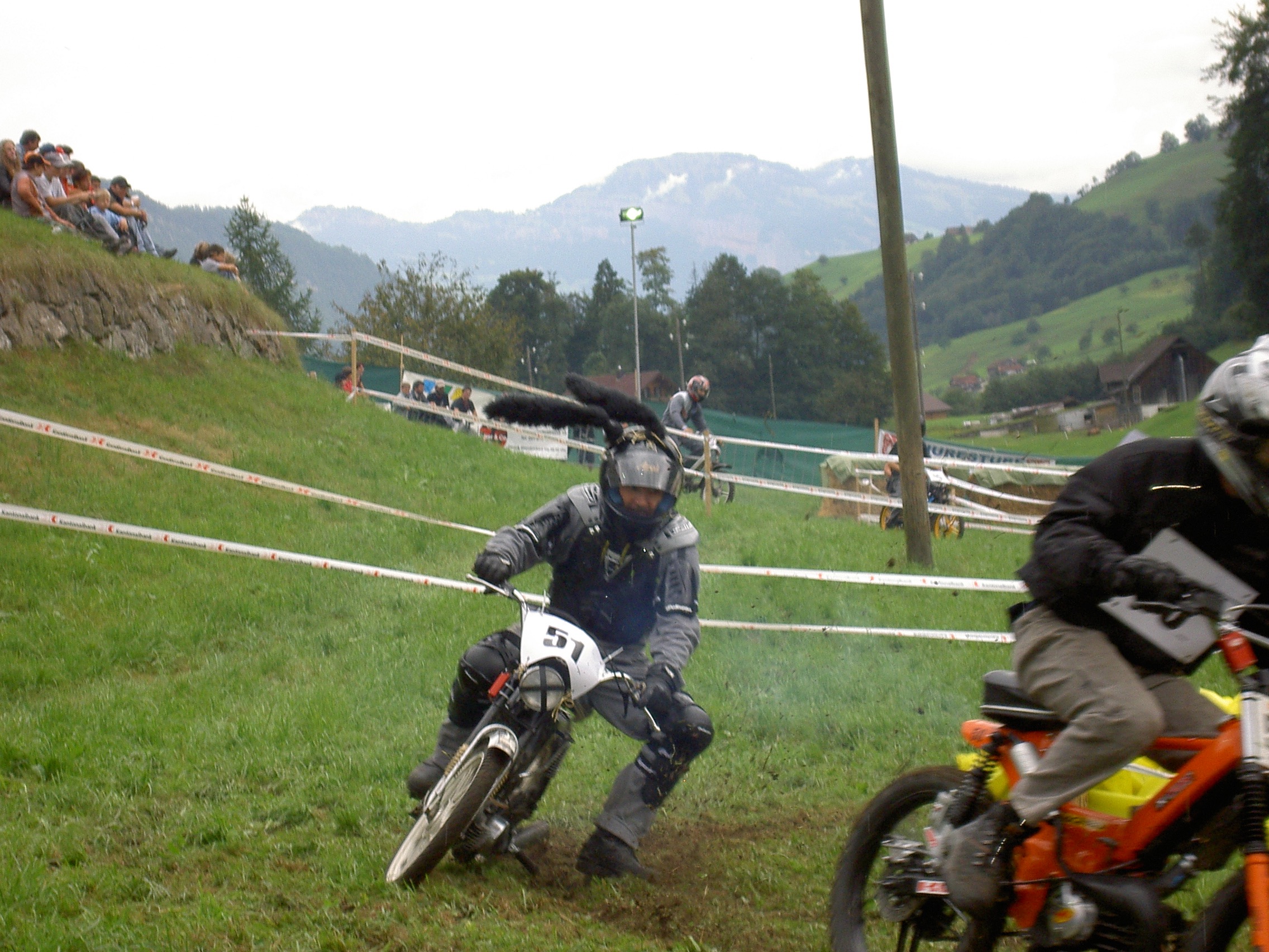 Nach den ersten zwei Läufen verstaute ich mein Renngerät Sang- und Klanglos wieder in den Anhänger und wir widmeten uns den Erfrischungen und lachten uns einen ab als es plötzlich aus den Lautsprechern klang: Für den Viertelfinal machen sich bereit: Startnummer sowieso, soundso, ... 51 und soundso. EINUNDFÜNFZIG??? Das bin ICH!!! Scheisse. Zum Anhänger gerannt, das Teffli wieder startklar gemacht, die Ohren wieder gerade gebogen, und mit erhöhtem Puls an den Start.