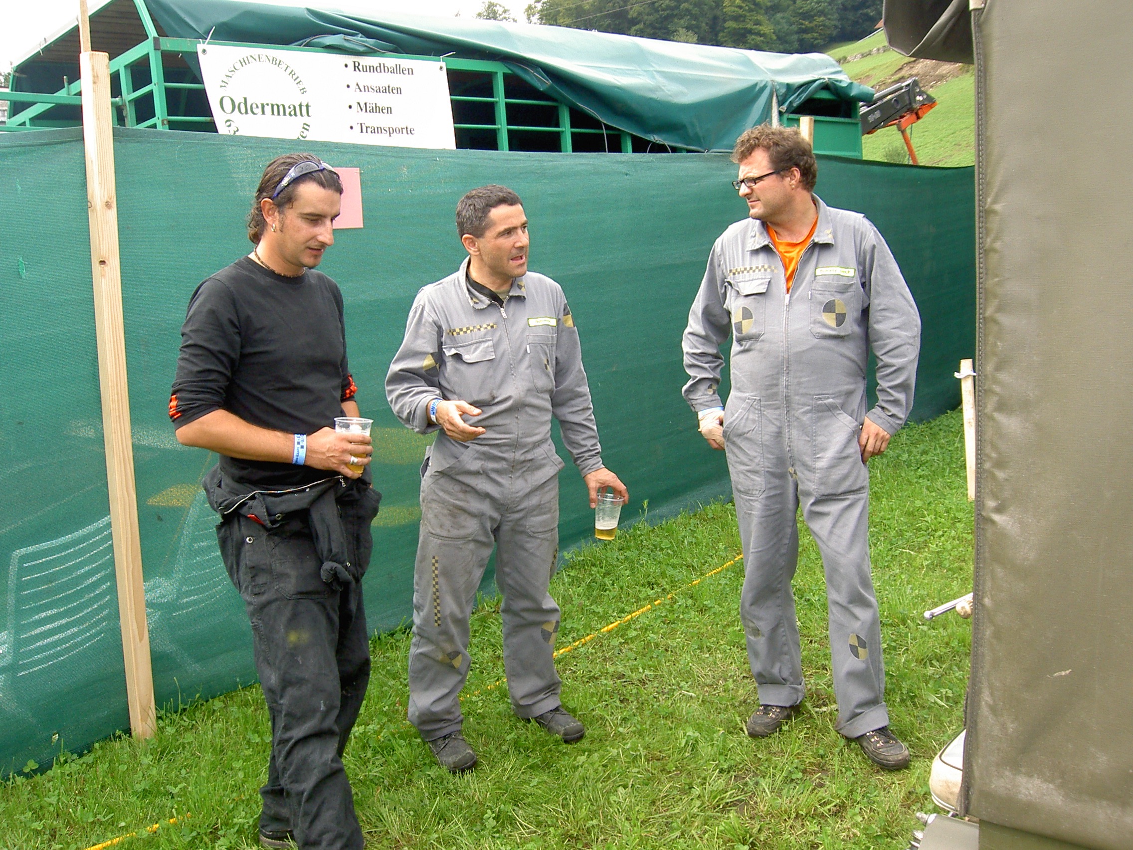 Rolf chauffierte mich also mit seinem Armee Jeep nach Ennetmoos an die Teffli Rally. Als ich meine Konkurrenten sah (insbesondere Hedlä's Truppe) dachte ich "nicht einmal den geringsten Ansatz einer Chance habe ich da". Es preichte mich natürlich genau in die Hedlä Gruppe. Na dann...